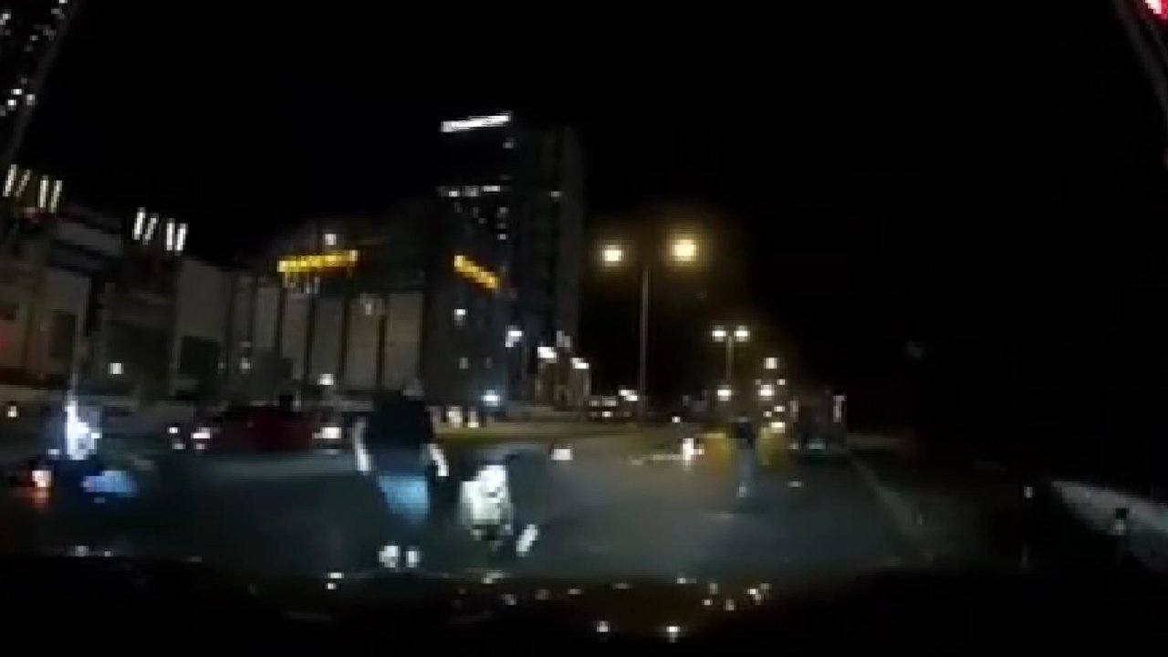 Ataşehir'de kırmızı ışıkta geçen motosiklet, yan yolda yeşil ışığın yanmasıyla hareket eden başka bir motosikletle çarpıştı. Kazada motosiklet sürücüleri yola savrularak yaralanırken, o anlar araç kamerasına yansıdı.