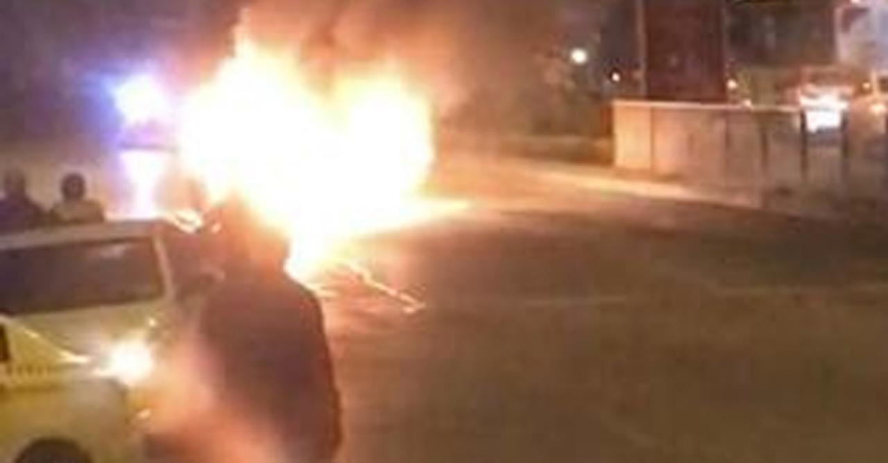 ATAŞEHİR'de seyir halindeyken alev alan otomobil dakikalar içinde demir yığınına döndü.