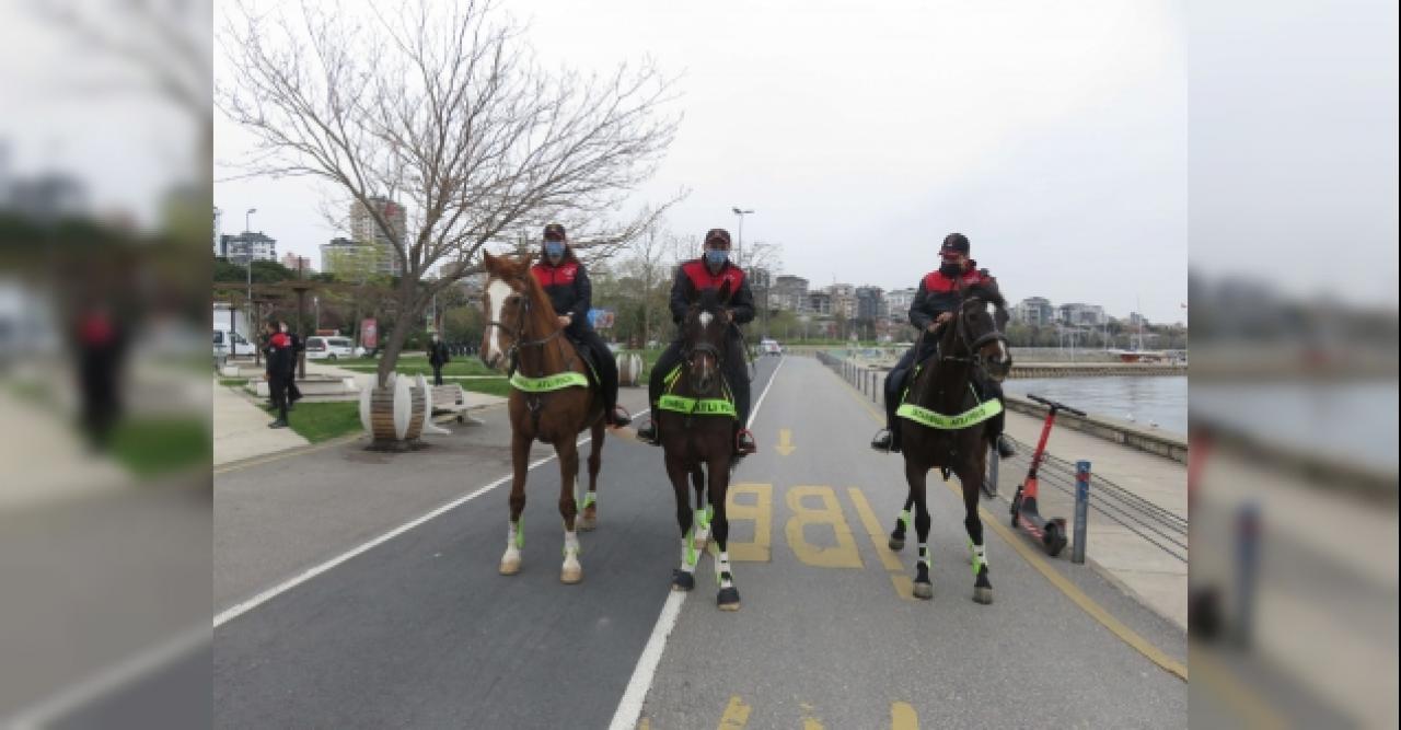 İstanbul Emniyet Müdürlüğü Çevik Kuvvet Şube Müdürlüğü Atlı Birlik Grup Amirliği'ne bağlı atlı polisler Caddebostan Sahili'nde denetim yaptı.