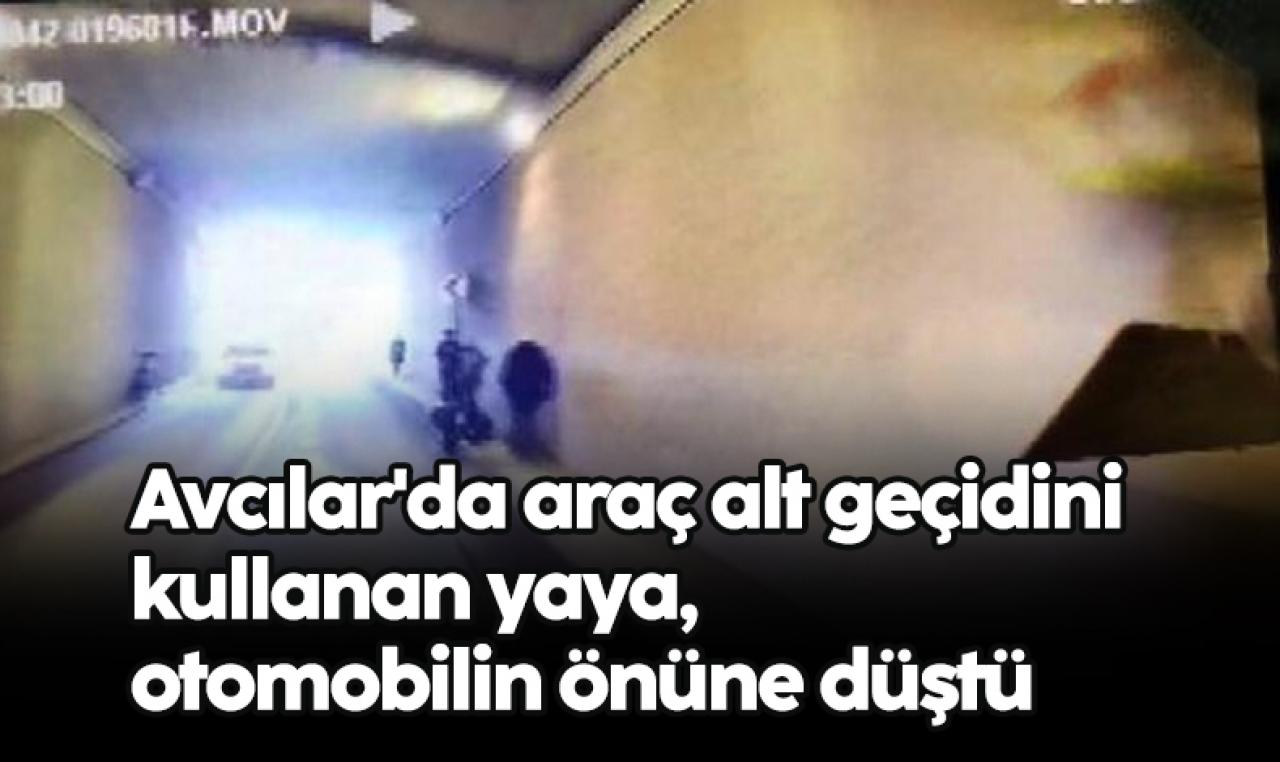 AVCILAR, D-100 Karayolu'nda bulunan araç alt geçidini yasak olmasına rağmen kullanmayı sürdüren yayalar, her gün ölümle burun buruna gelirken, kaldırımda yürüyen bir kişi otomobilin önüne düştü. Yaya, sürücünün ani fren yapması ile yara almadan kurtulurken, bir anda duran otomobile arkadan gelen hafif ticari araç çarptı. Kaza anları araç kamerası ile kaydedildi.