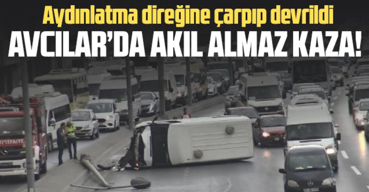 Avcılar'da D-100 Karayolu'nda şoförünün direksiyon hakimiyetini kaybetmesi nedeniyle kontrolden çıkan minibüs, elektrik direğine çarptıktan sonra devrildi. Kaza anı güvenlik kamerasına yansıdı.