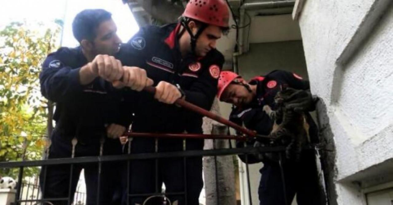 AVCILAR'da duvardan atlarken bacağına bahçe demiri saplanan kedi, itfaiye tarafından kurtarıldı.