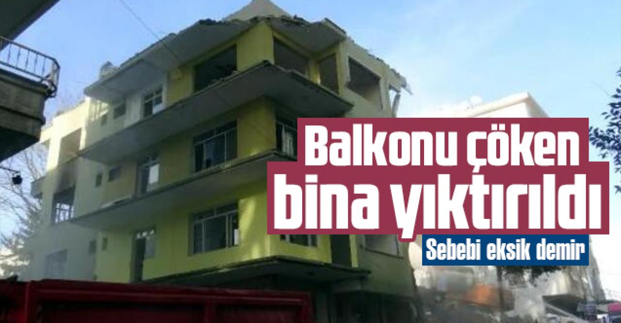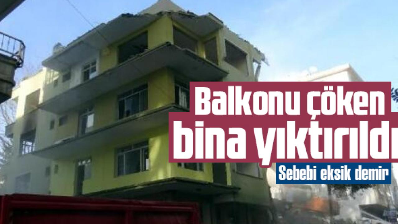 Yanında kentsel dönüşüm kapsamında yenilenmesine karar verilen 4 katlı binanın balkonunun çökmesi üzerine bu yapının da yıktırılması kararlaştırıldı. Dün sabah getirilen iş makinesi ile iki bina yıktırıldı. Ekiplerin iki binanı yıkarken beton ve demir kalitesinin çok düşük olması nedeniyle zorlanmadığı görüldü. Yıkım firması yetkilisi Kenan Çiftçi, balkonun kendiliğinden çökmesinin aslında bu binada oturanlar için büyük şans olduğunu söyledi. Çiftçi, balkon yapımında kullanılan demirin kolonlara bağlı olmadığını, bugünkü standartların çok altında kalitesiz beton ve ince demir kullanıldığını anlatırken, "Çok riskli bir bina. Buranın beton ve demir kalitesi ve kolonlar çok yetersiz. Çürük bir bina. Geç kalınmış bir durum. Yıkımı olmasa Allah korusun daha büyük bir felakete yol açabilirdi. Tesadüf eseri yıkılmasa insanlar burada yaşamaya devam edecekti. Binaların kontrol edilmesi gerekli. Balkonun demirleri kirişe bağlanmamış. Yetersiz donatı var. O günün koşullarına göre yapılan bu binayı dokunulduğunda yıkılabilir durumda. Kolonların arasındaki demirleri görüyoruz. 20 ton yerine yarısı çıkarsa bizim için iyi olduğunu söyleyebiliriz" ifadesini kullandı.DHA