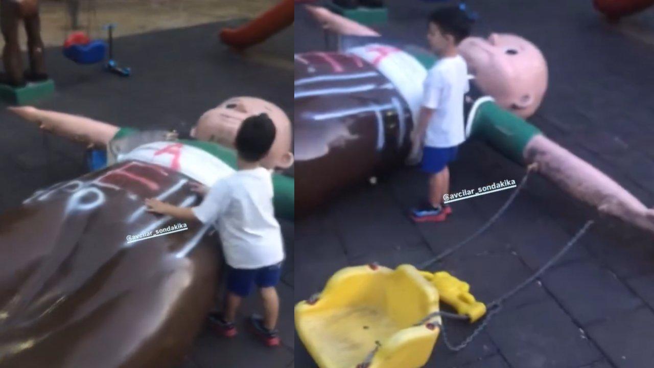 Avcılar'da bir çocuk parkında salıncaklar yere çakıldı.