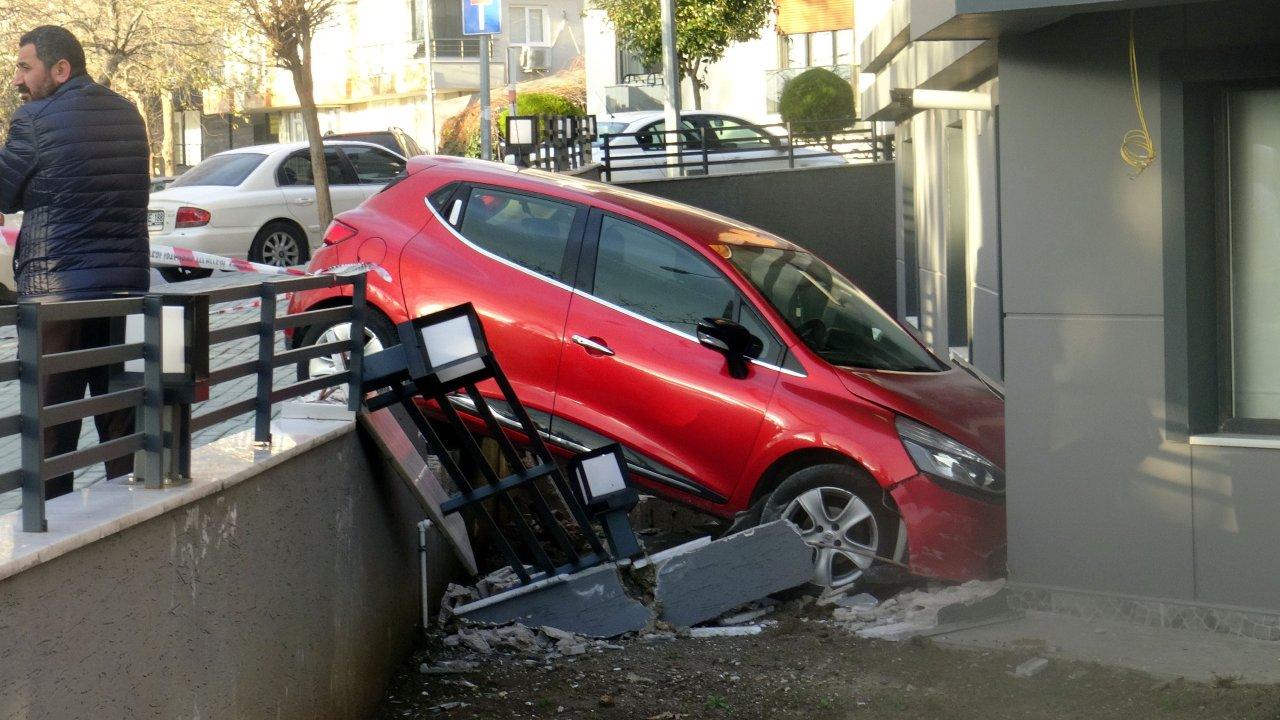 Avcılar’da fren yerine gaza basan sürücü önce kaldırıma çıktı ardından da bahçe duvarını aştı. Sürücü binanın birinci katındaki dairenin duvarına çarparak durabildi. Kazada, ölen ya da yaralanan olmadı.