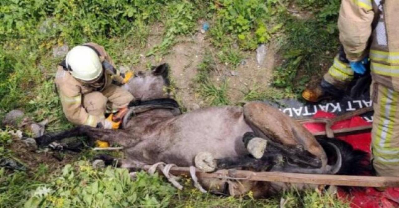 Yeşilkent Kazım Karabekir Caddesi’nde sahibi tarafından kullanılan at arabasını çeken at, yol kenarında ilerlerken birden dengesini yitirince yuvarlanarak kuru su kanalına düştü. Araba parçalanırken, boyunduruk ve yanında arabaya uzanan demir boruların etkisi ile at bir türlü doğrulamadı. Çevredekilerin 112 Acil Çağrı Merkezi’ni araması üzerine itfaiye ekibi sevk edildi. Gelen ekip çeşitli yerlerinde ezik bulunan atı önce sakinleştirdi ardından arabayı çekmek için boynuna geçirilen boyunduruğu sökerek rahatlatırken, aynı zamanda iki uzun demir borudan kurtulmasını sağladı. At, itfaiye erlerinin çabası ile ayağa kalkarken çeşitli yerlerindeki küçük yara veya ezikler nedeniyle çağrılan belediye veteriner ekibine teslim edildi.