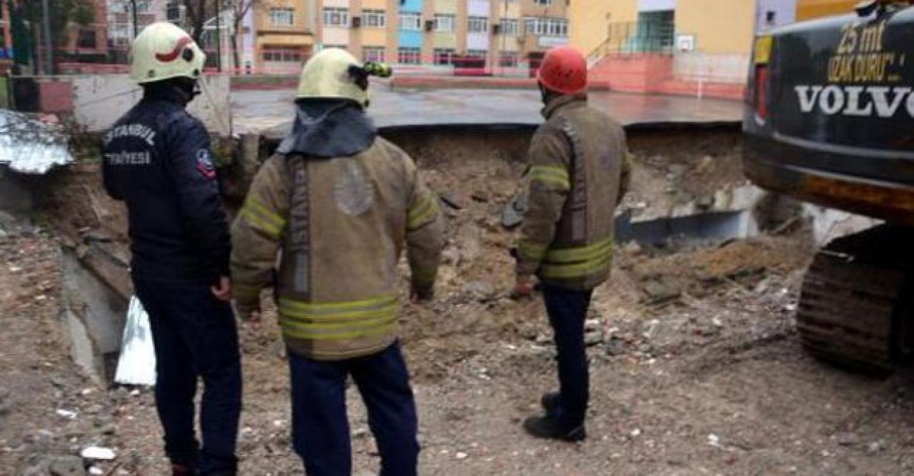 AVCILAR'da kentsel dönüşüm kapsamında yıktırılan bir binanın temel kazısı ardından bitişikteki ilkokulun duvarı çöktü.