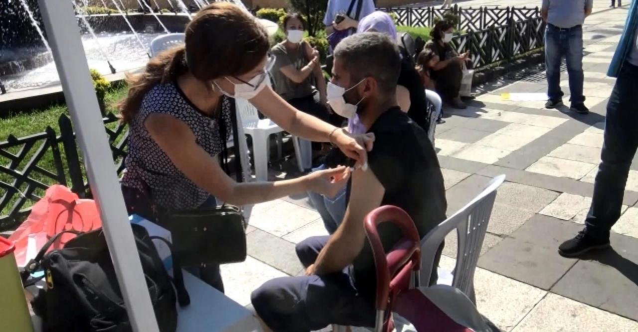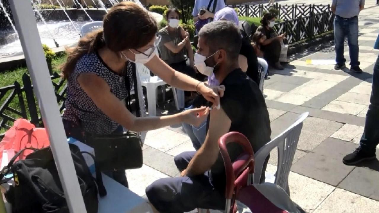 Koronavirüs salgınının önüne geçebilmek için aşılama çalışmalarına ağırlık verilirken, Avcılar'da semt pazarının yanındaki meydana kurulan stantta 101 kişi aşılandı.