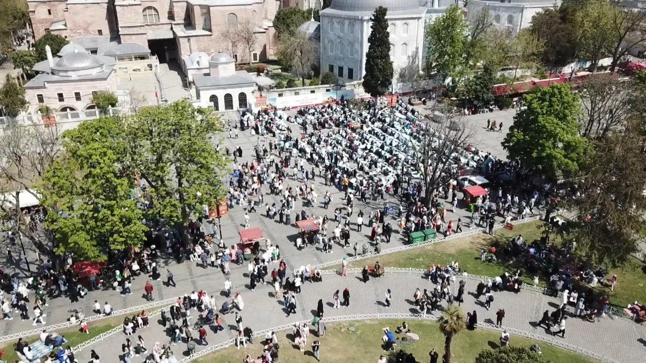 İstanbul'un tarihi ve turistik yerlerini gezip değerlendirmek isteyen vatandaşlar Sultanahmet Meydanı ve Ayasofya-i Kebir Cami-i Şerifi'nin de bulunduğu bölgede yoğunluk oluşturdu. Cuma namazını kılmak isteyenler Ayasofya-i Kebir Cami-i Şerifi ve Sultanahmet Camii'ne geldi. İçeride yer bulamayanlar, meydanda belirlenen alanlara seccadesini sererek namazını kıldı.