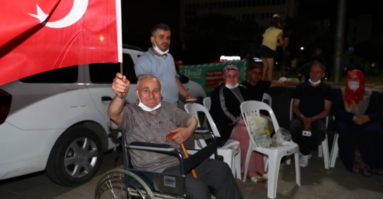 Gece boyunca Kuran-ı Kerim tilavetiyle ve dualarla şehitler anılırken ilahi, film gösterimi ve müzikle de demokrasi zaferi kutlandı. Coşkulu geçen gecede bayrakları bir an olsun ellerinden bırakmayan çocukların yanında yaşlılar da eşlik etti. Sahneye çıkan 89 yaşındaki Cemal Başaran okuduğu şiirle büyük alkış aldı. Dün olduğu gibi bundan sonra da hainlere geçit vermeyeceklerini söyleyen Başaran, “Biz daha ölmedik. Vatanı kimse sahipsiz sanmasın. Bugün biz varız yarın çocuklarımız onlardan sonra da torunlar geliyor. Bu ülke hep ayakta kalacak” dedi.
