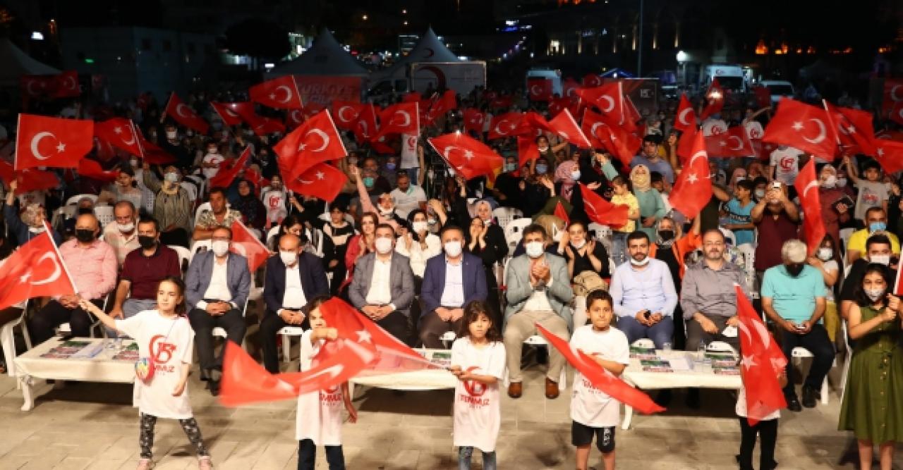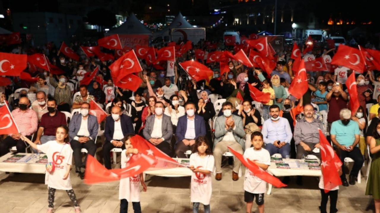Daha sonra sahneye çıkan sanatçı Esat Kabaklı sevilen türkülerini seslendirdiği bir konser verdi. Alandaki vatandaşlar da “Ölürüm Türkiyem”, “Malazgirt” ve “Bil Oğlum” gibi popüler eserleri sanatçıyla birlikte söyledi. Kabaklı, konserin kapanışını sahnede çocuklarla birlikte “Bu bayrak” türküsünü söyleyerek yaptı.