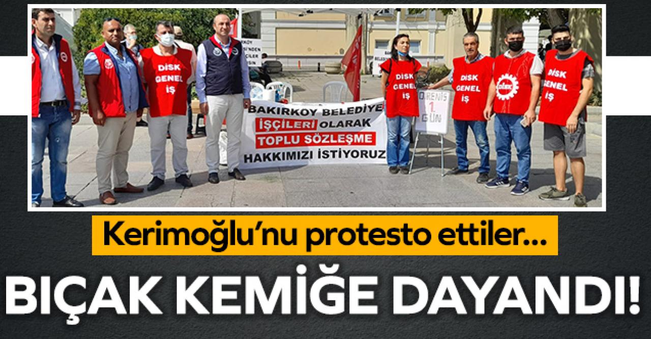 Bakırköy Belediyesi'nde işten atılan 4 işçi, Belediye Başkanı Bülent Kerimoğlu'nu protesto etti. Sendikadan istifa etmelerinin istendiğini ama istifa etmedikleri için işten atıldıklarını kaydeden işçiler, “Artık yeter” sloganları attı. İşçilerden Nazife Toprak, “Kerimoğlu'nun karşısına her fırsatta çıkıp, haykıracağız. Hak, hukuk ve adalet diyenlerin nasıl lüks ve şatafatlı hayat yaşadığını, milyonlarca dolarlık saraylarında oturduğunu biliyoruz. Hakkımızı istiyoruz. Ve alacağız. Çünkü haklıyız ve kazanacağız” dedi.