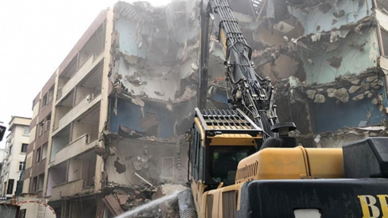 Bakırköy'de 8 aydır yıkılmayı bekleyen riskli 52 yıllık binanın yıkımı gerçekleşiyor.