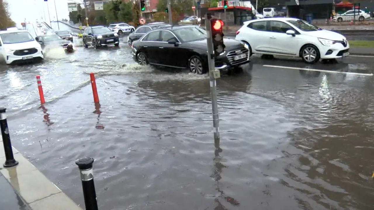 İstanbul'un genelinde etkili olan kuvvetli sağanak yağış hayatı olumsuz yönde etkilemeye devam ediyor. Meteoroloji Genel Müdürlüğü’nün uyarısının ardından sabah saatlerinde başlayan şiddetli yağmur, Bakırköy’de hayatı olumsuz etkiledi. Aksu Caddesi ve çevresinde yağmur suyu birikintileri nedeniyle yollar kısmen kapandı, araç sürücüleri kontrollü geçiş yapmak zorunda kaldı.