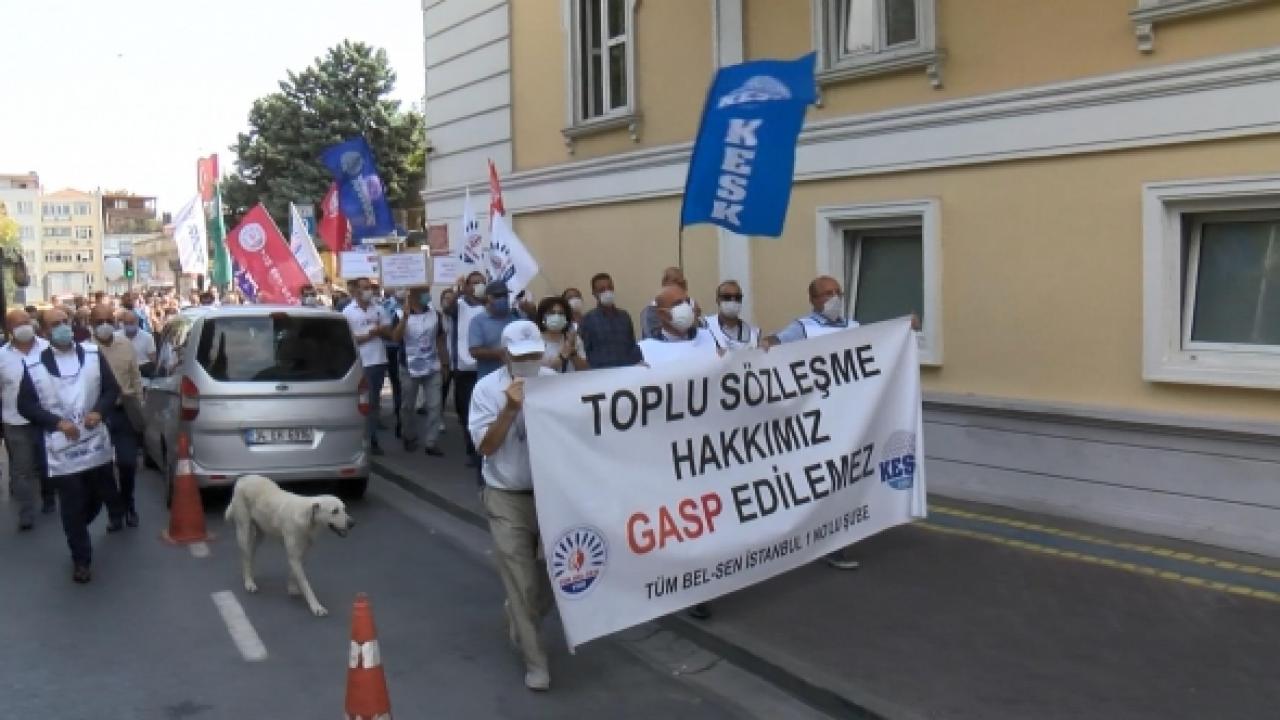 TÜM BEL-SEN üyesi yaklaşık 100 kişi, CHP Bakırköy İlçe Başkanlığı önünde toplandı. Ellerinde pankart ve dövizlerle sloganlar atan grup, daha sonra Özgürlük Meydanı önüne geldi. Burada slogan atmaya devam eden grup, toplu sözleşme haklarının gasp edildiği gerekçesiyle basın açıklaması yaptı. TÜM BEL-SEN İstanbul 1 Nolu Şube Başkanı Adem Erdem, "Bakırköy Belediye Başkanı Bülent Kerimoğlu, 18 aydır toplu sözleşme imzalamayarak kamu emekçilerini mağdur etmeye devam etmekte, bir yandan da uyuşmazlık tutanağı gibi biz memurların toplu sözleşmesinde olmayan bir yolu ileri sürmek isteyerek süreci uzatmak istemektedir. Kamu çalışanları olarak bizler Bülent Kerimoğlu'nun samimi olmadığını görmekteyiz. Bizlere, kazanılmış haklarımızı elimizden alan bir sözleşme dayatmaktadır. Geri bir sözleşmeyle emekçinin cebine göz diktiğini, mevcudun altına inilmesini talep etmekte güç yaşam koşullarında olan emekçileri daha da açlığa, sefalete mahkum etmek istediğini görmekteyiz" dedi.