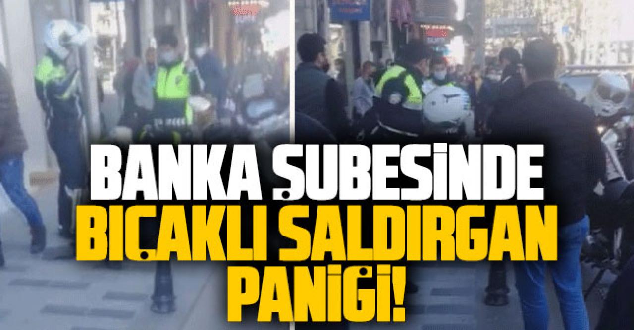 Olay, dün saat 16.00 sıralarında Beyoğlu Taksim'de meydana geldi. Edinilen bilgiye göre, ismi öğrenilemeyen bir kişi Taksim Meydanı'ndan yürüyerek Cumhuriyet Caddesi'ndeki banka şubesinin önüne geldi. Elindeki bıçakla içeriye giren kişi güvenlik görevlisini karşısında buldu. Bir süre güvenlik görevlisi ile arbede yaşayan saldırgan, çalışanlara tehditler savurdu. O sırada banka şubesinin önünde denetim yapan trafik polisleri olayı görerek içeriye girdi. Arbede sırasında elinden yaralanan saldırgan trafik polislerince kısa sürede etkisiz hale getirildi. Madde bağımlısı olduğu iddia edilen kişi olay yerine gelen ambulansla çevredeki bir hastaneye götürüldü.