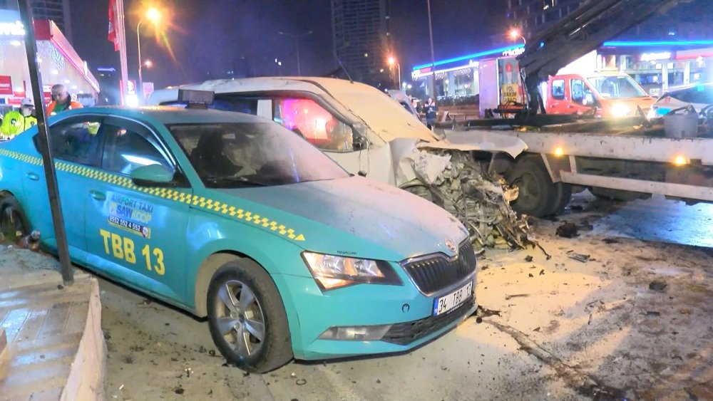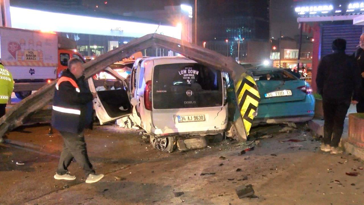 Kartal'da, iddiaya göre D-100 Karayolu'nda hızla ilerleyen hafif ticari araç, bariyerlere vurduktan sonra park halindeki taksiye çarptı. Hafif ticari araç bariyerleri yerinden sökerken, kazada 1'i ağır 4 kişi yaralandı.