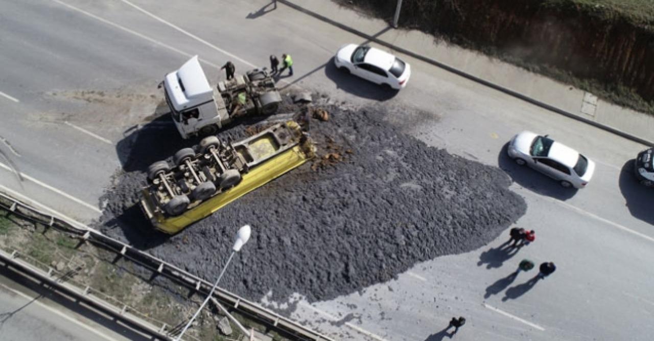 Kaza saat 10.30'da Başakşehir Rıfat Ilgaz Caddesi'nde meydana geldi. Başakşehir Çam ve Sakura Şehir Hastanesi metro inşaatından tonlarca hafriyat alan kamyon, Rıfat Ilgaz Caddesi'nde rampayı çıkarken arızalandı. Geri geri kaymaya başlayan hafriyat kamyonunun dorsesi kupa kısmından ayrılarak ters döndüı. Dorse içindeki hafriyat yola döküldü.