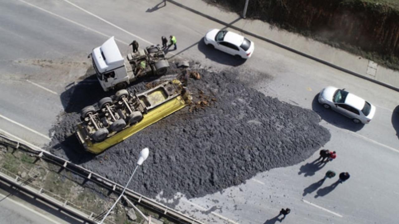 Kaza nedeniyle yolun iki şeridi trafiğe kapandı. İhbar üzerine olay yerine polis ekipleri sevk edildi. Olay yerine gelen iş makinesi ile yola dökülen inşaat atığı başka bir hafriyat kamyonuna yüklendi. Ters dönen dorse ise vinç ile bulunduğu yerden kaldırıldı.