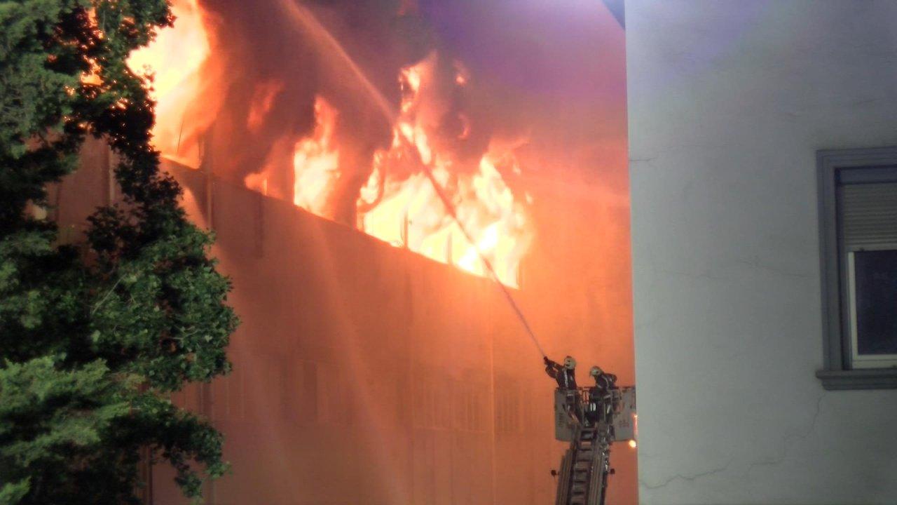 DHA- Başakşehir İkitelli Organize Sanayi Bölgesi'nde fabrikaların bulunduğu 4 katlı binanın çatı katında çıkan yangın, 8 saattir süren müdahaleye rağmen söndürülemedi. İtfaiye ekipleri, alevleri kontrol edebilmek için aralıksız çalışıyor.