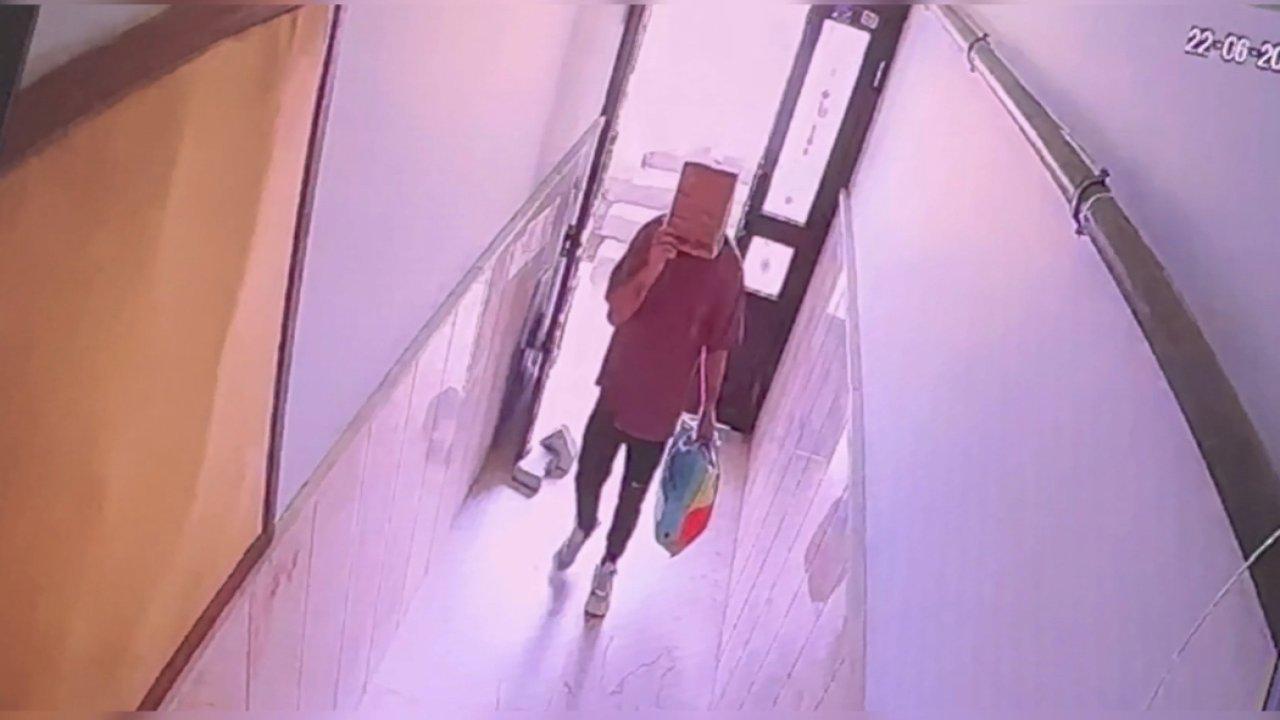 Kafasına kutu geçirerek apartmanın içine giren hırsız, bisikletin yanına gidiyor. Bu sırada kutuyu başından çıkaran hırsız, arkasına dönerek güvenlik kamerasına bakıyor. Ardından da kafasına kutuyu yeniden geçirerek bisikleti apartmandan çıkarıyor. Apartmandan dışarı çıktıktan sonra kafasındaki kutuyu atan hırsız, bisiklete binerek olay yerinden uzaklaşıyor.