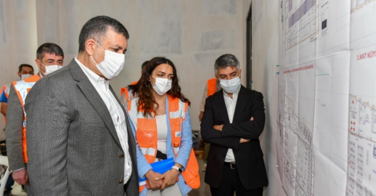 Bağlarçesme Mahallesi'nde yapımı devam eden kütüphane inşaatını inceleyerek bilgi alan Başkan Bozkurt çalışmaların hızlandırılması talimatını verdi.