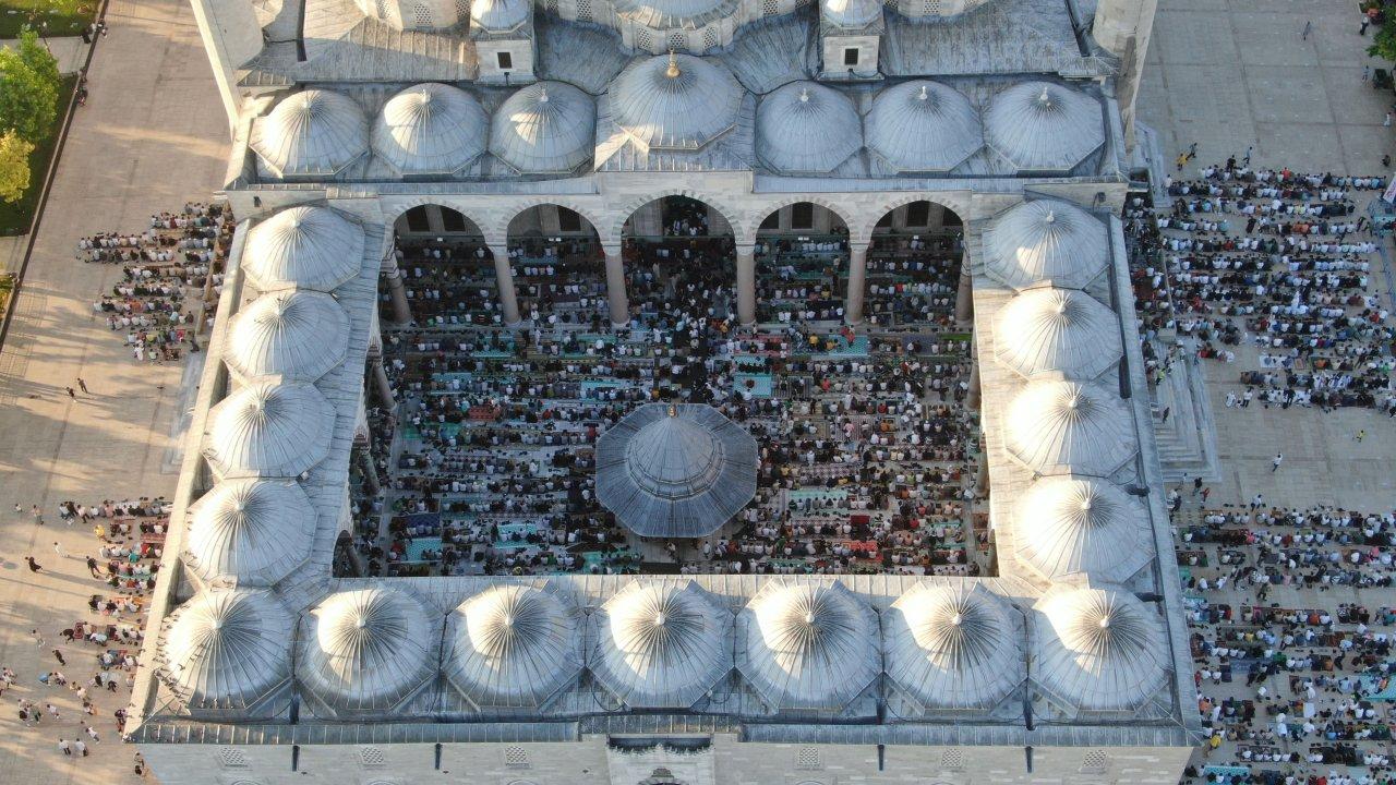 DHA- Bayram Namazı için binlerce İstanbullu Fatih Camii'nde bir araya geldi. Namaz vaktinden saatler önce Fatih Camii'ni dolduranlar bayram namazını kıldı. Fatih Camii'nin içi kısa süre içinde dolarken, kalabalık önce iç avluya sonra dış avluya taştı. Namaz vaktinin gelmesiyle saf tutan İstanbullular birlikte bayram namazını kıldı. Bölgede oluşan kalabalık dronla görüntülendi.