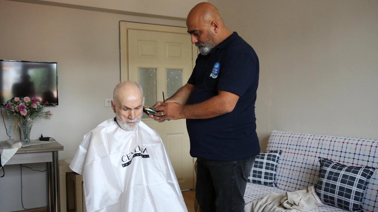 Ekipler bu kez bayram temizliği ve bayram tıraşı için Rami’de ikamet eden 60 yıllık evli çift Demirali Öztürk (87) ve Hamiye Öztürk’ün (80) evindeydi.