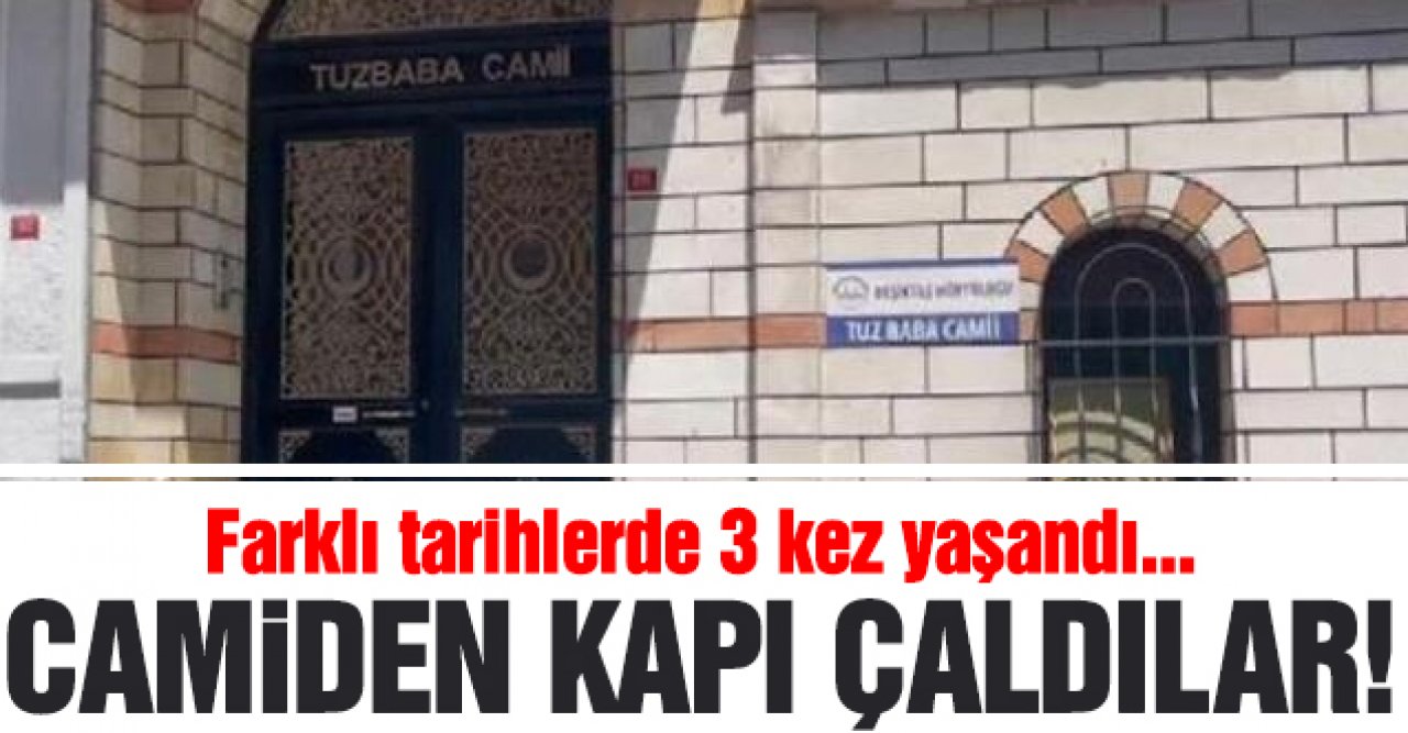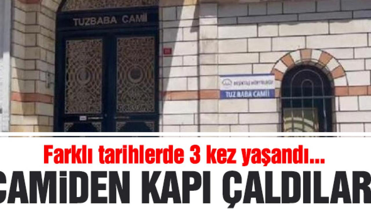 BEŞİKTAŞ Tuzbaba Camisi'nin şadırvan kapısı cemaatin iddiasına göre 3 kez farklı tarihlerde çalındı. Şüphelilerden birinin kapıyı sırtlayarak götürdüğü anlar kameraya yansıdı.