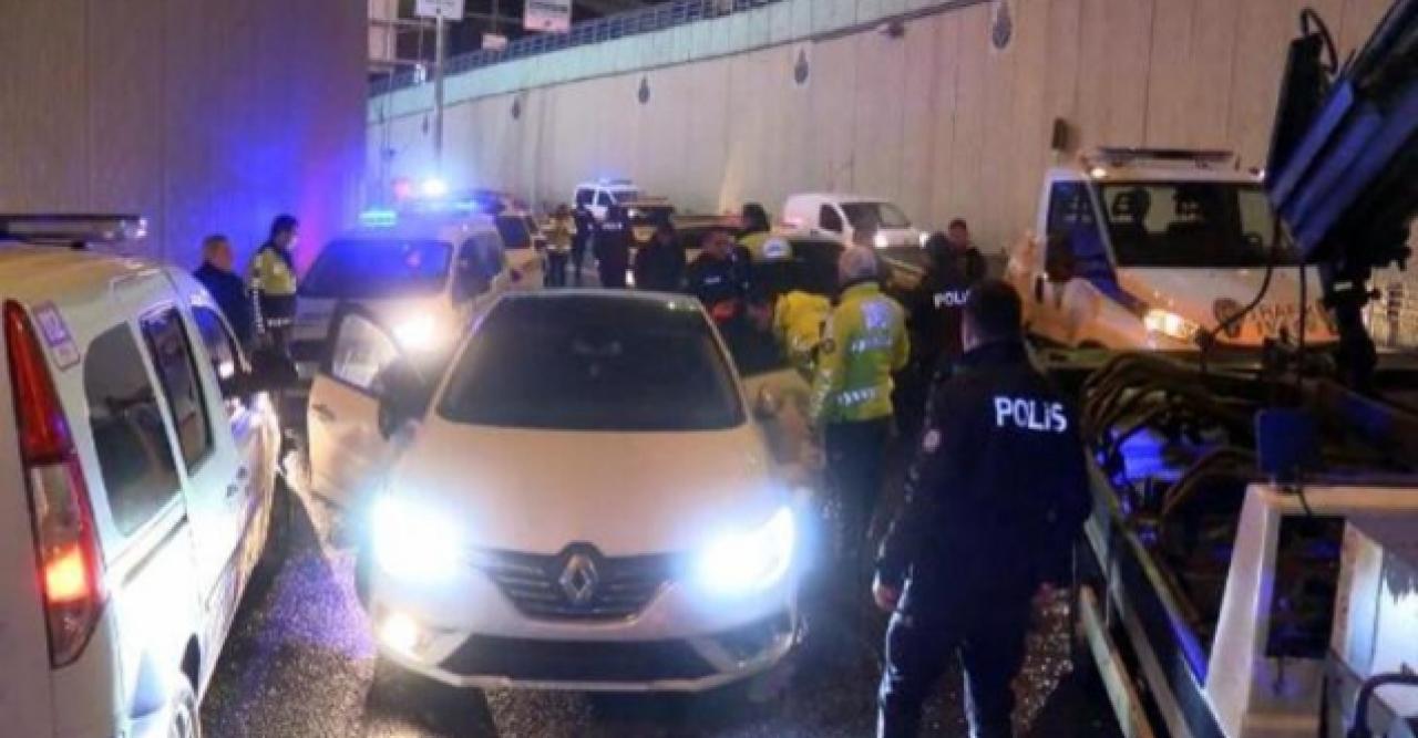 Polislerin 'Dur!' ihtarına uymayan Murat E. yönetimindeki otomobil, hızla kaçmaya çalıştı. Murat E., 34 EYM 199 plakalı otomobil ile trafik polislerine ait otoların arasından geçerek uzaklaşmak istedi. Bu sırada 2'si polis otosu olmak üzere toplam 3 araca çarpan otomobilin lastikleri patlayınca olay yerinden kaçamadı.