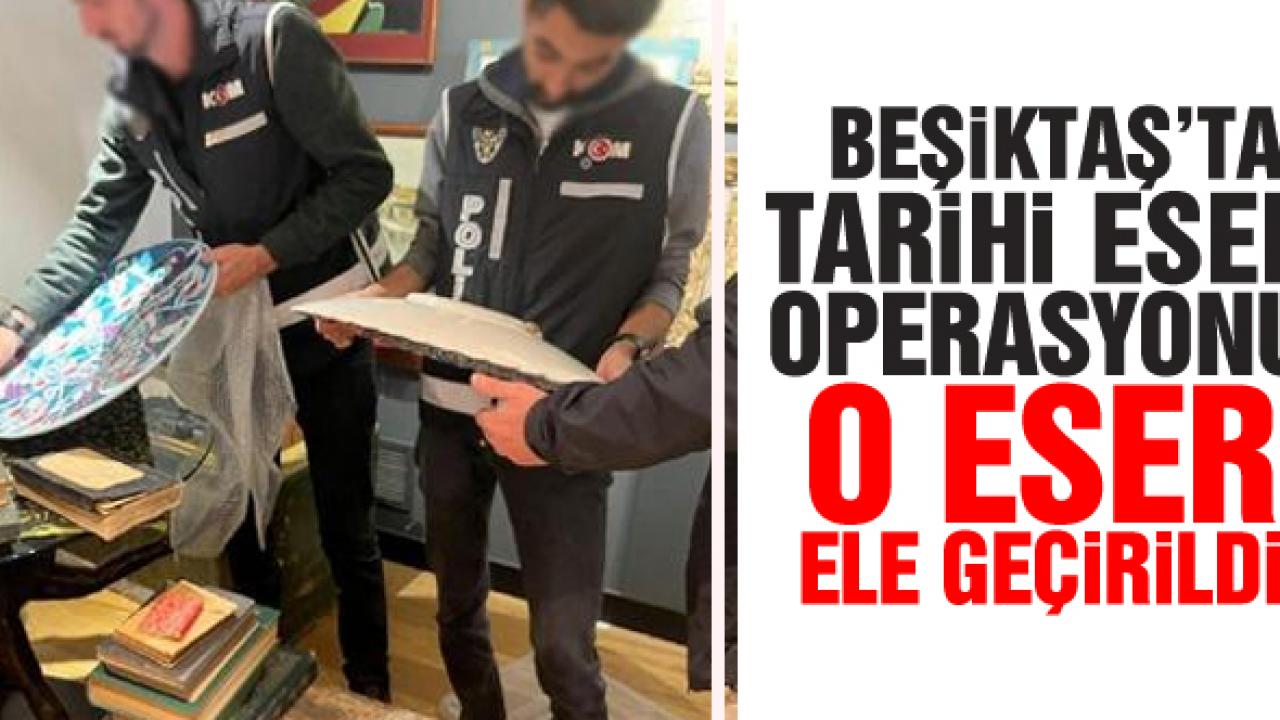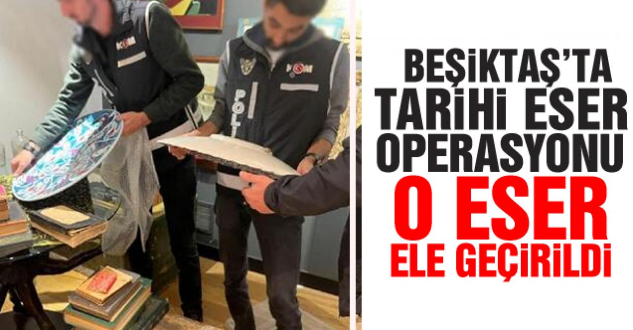 BEŞİKTAŞ'ta bir iş yerine yapılan operasyonda, Sultan Abdülmecit tuğralı, bir vakfın koşullarını belirten belge anlamına gelen vakfiye ile birlikte, tarihi eser niteliğinde bin 638 parça halı ve kilim, takunya, sandık, sandık kapağı, seramik, ahşap obje ile 5 adet yabani hayvan derisi ele geçirildi. Eserlerin Osmanlı'nın farklı dönemlerine ait olduğu değerlendirilirken, operasyonda 1 kişi gözaltına alındı.