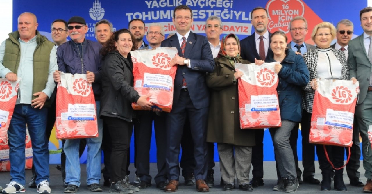 İstanbul Büyükşehir Belediyesi (İBB), kentte toplam 68 bin 600 dekar alanda üretim yapan 1592 çiftçiye 2.541 torba yağlık ayçiçek tohumu dağıtımını başlattı. Dağıtımın başlaması nedeniyle, İBB Başkanı Ekrem İmamoğlu’nun katılımıyla, Silivri’deki Müjdat Gürsu Spor Tesisi önünde bir etkinlik düzenlendi. Etkinlikte bir konuşma yapan Silivri Belediye Başkanı Volkan Yılmaz, İBB’nin ilçede tarıma yönelik desteklerinden dolayı İmamoğlu’na teşekkürlerini sundu. Silivri’de tarıma ve hayvancılığa dönük hizmetlerinden söz eden Yılmaz, “Silivri, tarım ve hayvancılık konusunda bu potansiyelin farkında olan bir yönetim tarafından şu an idare ediliyor. Biz, İstanbul'da bir hayvan pazarının olmadığı, belediyenin denetiminde, gözetiminde bir mezbahanın olmadığından hareketle İstanbul'un ilk ve tek hayvan pazarını şu an inşa ediyoruz. Bir ay sonra hayvan pazarının açılışını yapacağız. İnşallah Büyükşehir Belediye Başkanımız da o açılışta bizlerle birlikte olur” diye konuştu.