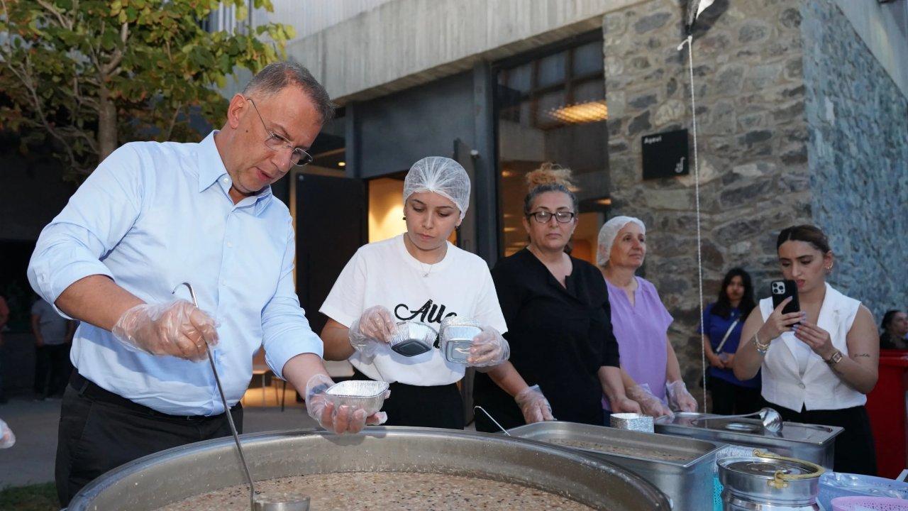 Beylikdüzü Belediyesi tarafından Muharrem Ayı dolayısıyla Beylikdüzü Mutfak’ta pişirilen aşureler binlerce kişiye ikram edildi. İlçede yaşayan vatandaşlara kendi elleriyle aşure ikramı yapan Beylikdüzü Belediye Başkanı Mehmet Murat Çalık, “Birliğin, beraberliğin ve dayanışmanın simgesi aşurelerimiz, insanlığa ve tüm dünyaya şifa olsun” dedi