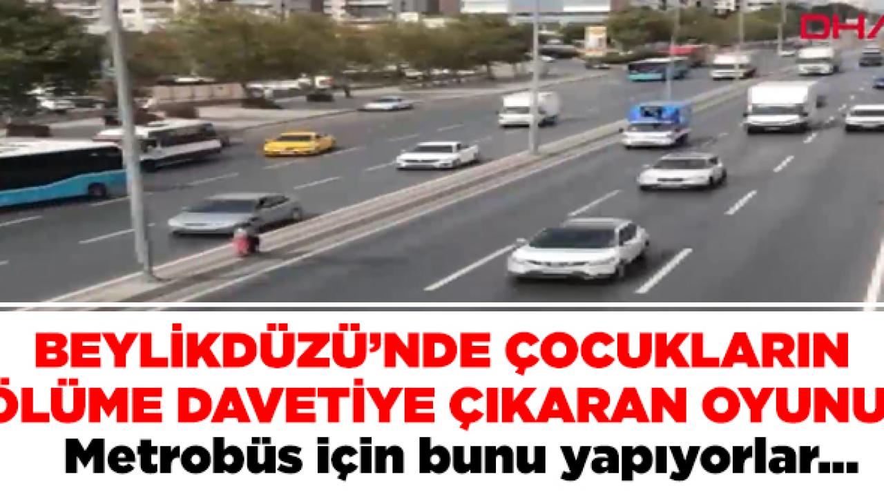 Metrobüse bedava binmek isteyen çocuklar adeta ölümle dans ediyor! Beylikdüzü Esenyurt arasından geçen duraklardan birine D-100 Karayolu üzerinden geçmeye çalışan çocukların o anları görüntülenirken sürücüler de zor anlar yaşayabiliyor. Yüreklerin ağza geldiği dakikalar kameralara kaydedildi.