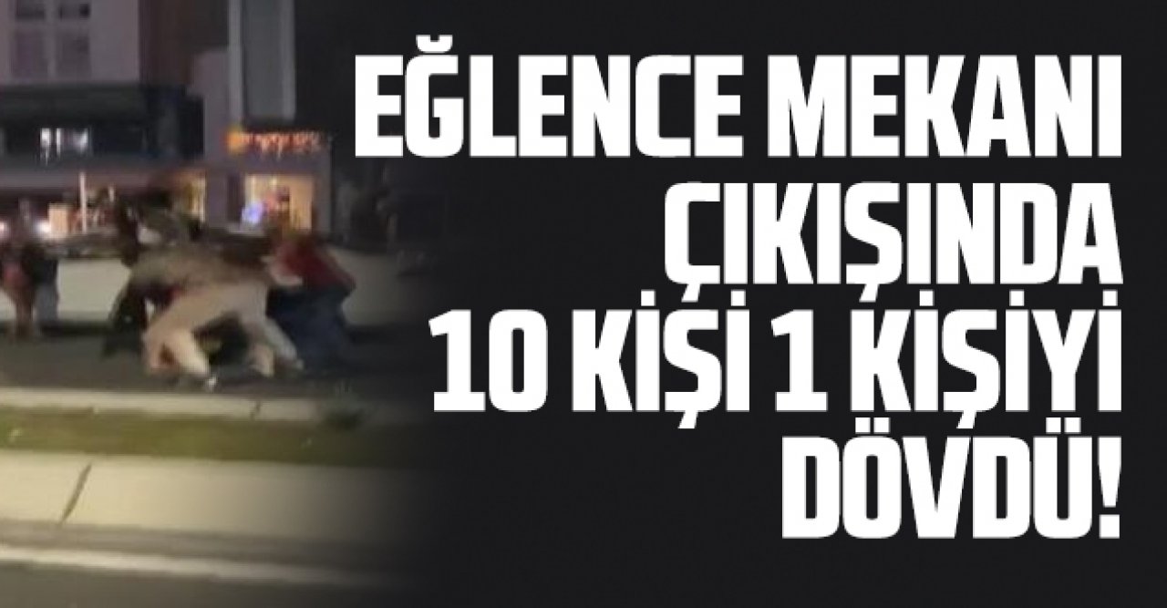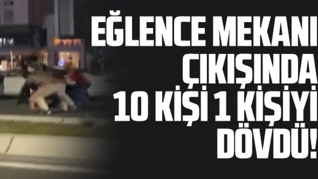BEYLİKDÜZÜ'nde eğlence mekanı çıkışında 10 kişi, yabancı uyruklu bir kişiyi yere yatırıp, darbetti. Çevredekilerin ayırdığı kavga cep telefonu kamerasına yansıdı.