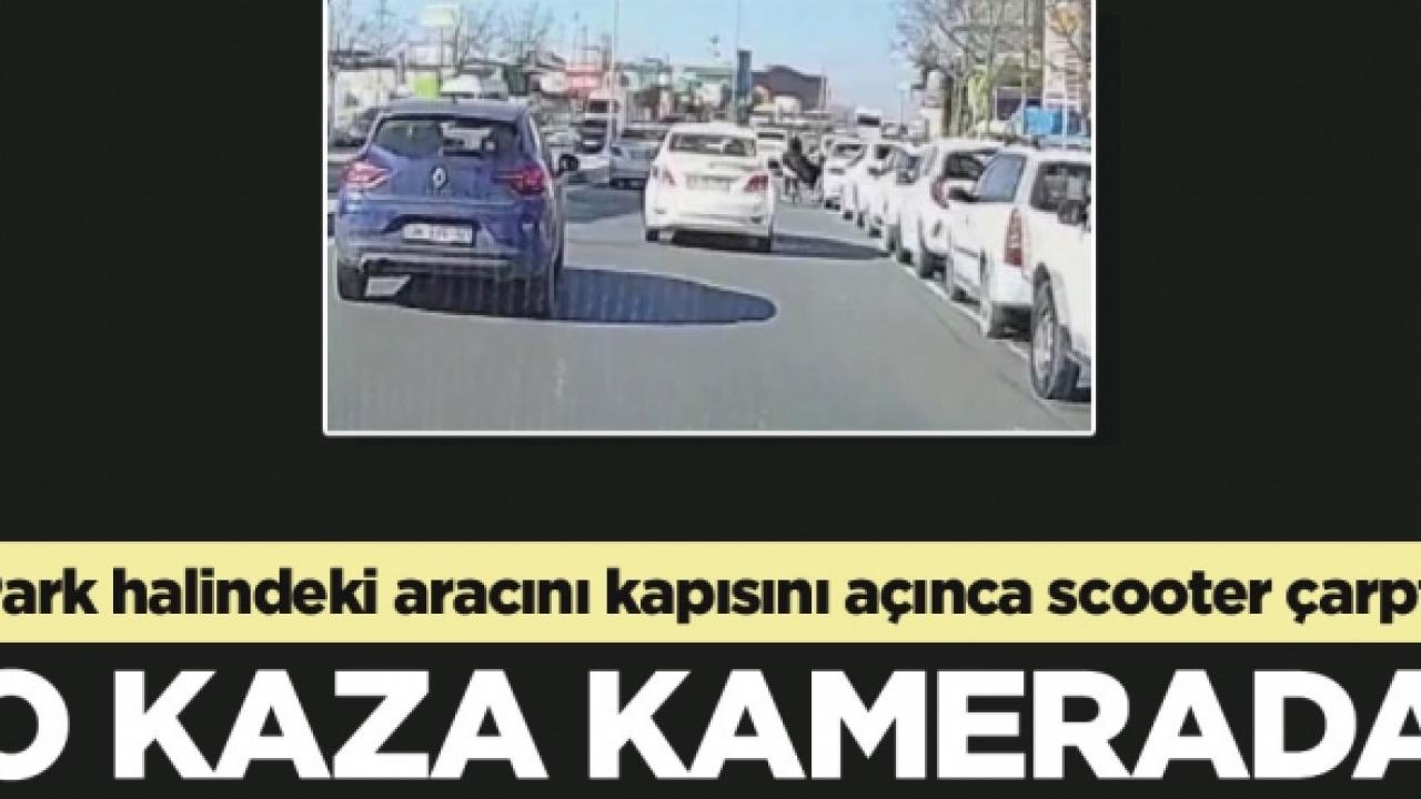 Görüntüler, dün sabah saatlerinde Yakuplu Mahallesi Kavaklı Caddesi'nde kaydedildi. Otomobilini park eden sürücü, aracın kapısını açtı. Bu sırada yolda giden scooterlı, açılan kapıya çarparak yola düştü. Scooteri kullanan kadının arkasından gelen otomobil sürücü ise son anda frene basarak, olası facianın önüne geçti. Scooterlı kazayı hafif sıyrıklarla atlattı. İki tarafın da birbirinden şikayetçi olmadığı öğrenilirken, kaza anın araç kamerasına yansıdı.