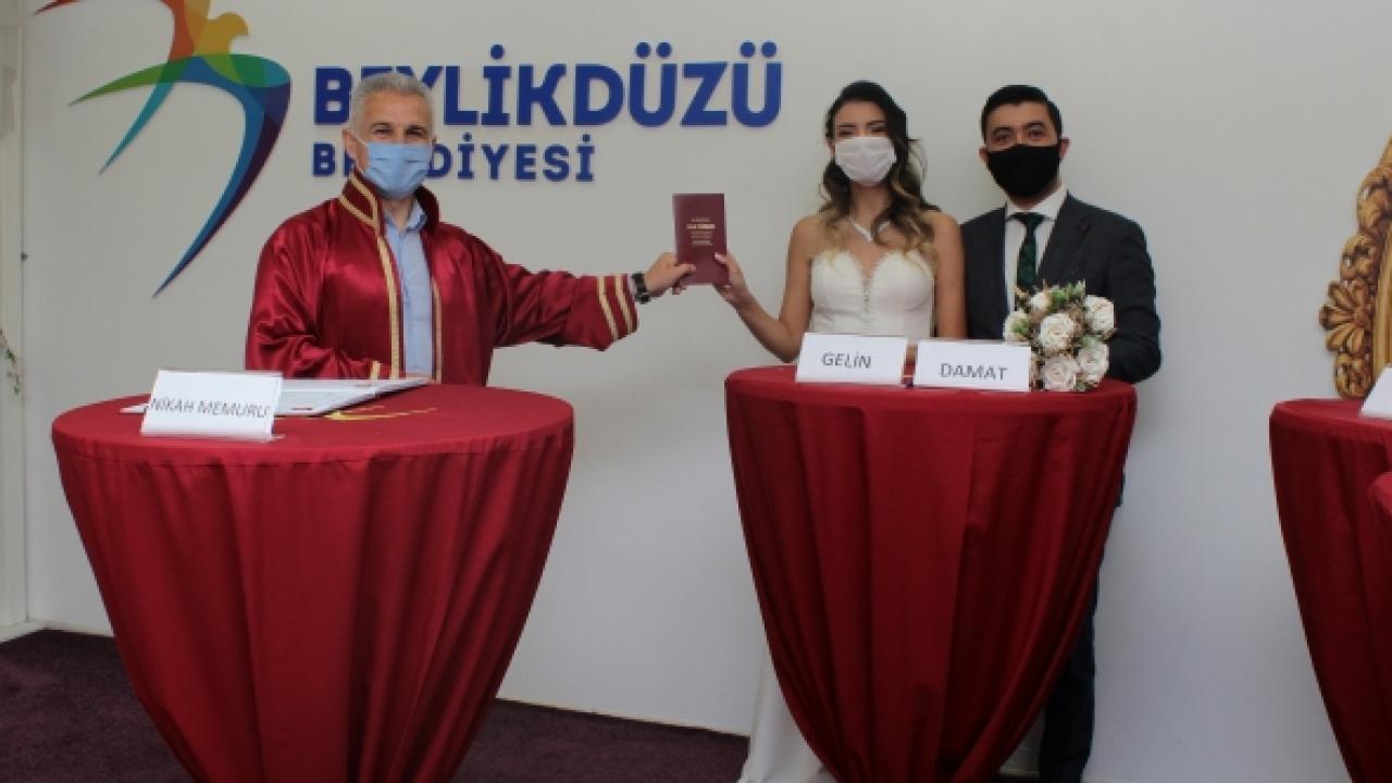 Beylikdüzü Belediyesi’nin aldığı önlemler kapsamında nikahlar; dezenfekte edilen salonlarda herkes maskeli olmak şartıyla nikah memuru, gelin, damat, iki şahit ve konukların katılımıyla sosyal mesafe kuralı gözetilerek kıyılıyor. Davetliler nikah salonuna ateşleri ölçülerek alınırken giriş ve çıkışta dezenfeksiyon noktaları bulunuyor. Nikah merasimi boyunca salonda bulunan herkesin maske takması zorunlu tutulurken konuklar için sosyal mesafe kuralına uygun oturma düzeni oluşturuluyor. Takı töreninde ise mesafe kurallarının ihlal edilmemesi adına sandık veya kutu konulurken toplu fotoğraf çekimi de gerçekleştirilmiyor. Evlilik cüzdanının dahi dezenfekte edilerek takdim edildiği tören sonunda, ikinci törene geçilmeden salon bir süre havalandırılıyor.