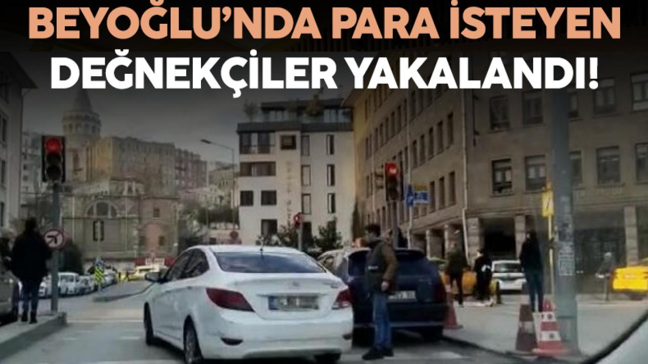 BEYOĞLU'nda yol kenarına aracını park edenlerden para isteyen 2 değnekçi yakalandı.