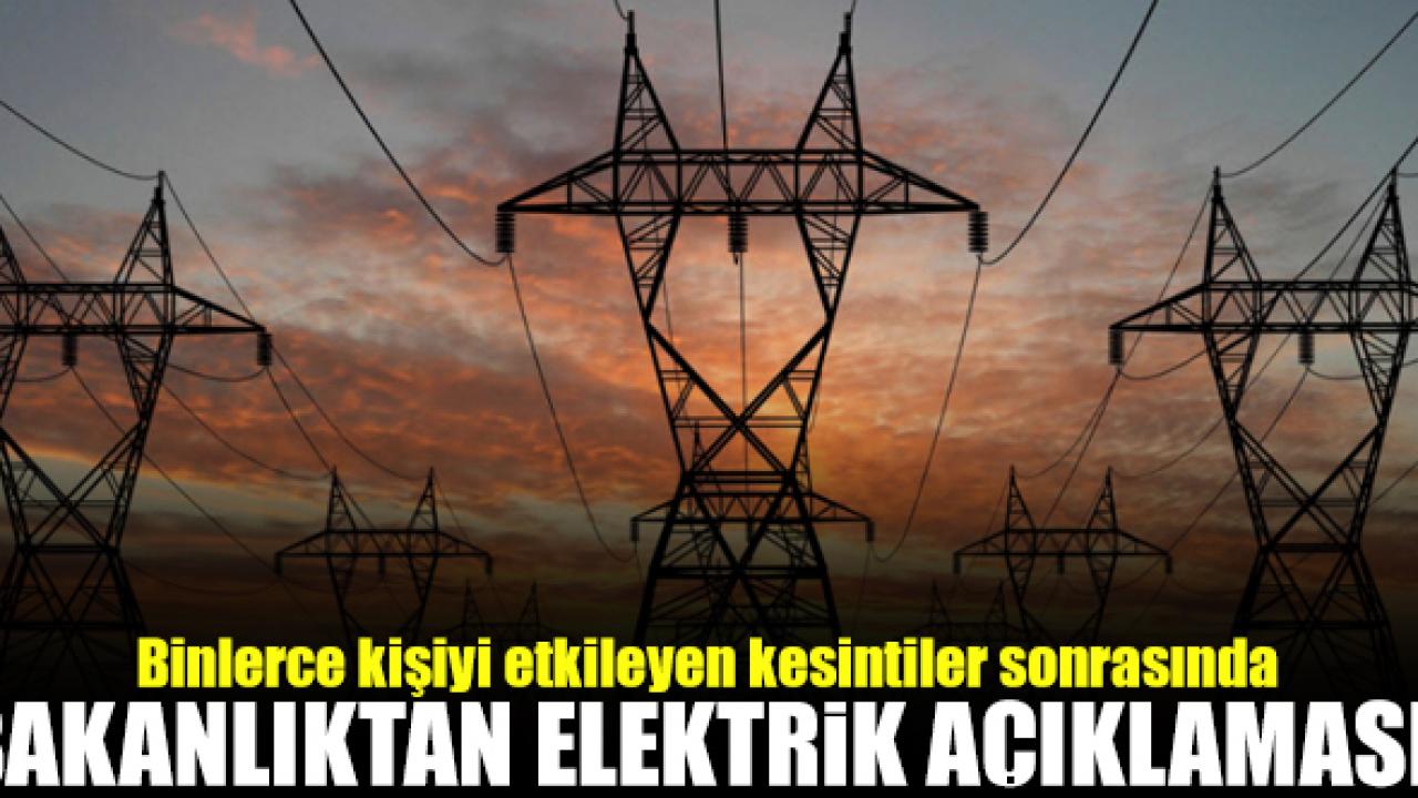 Enerji ve Tabii Kaynaklar Bakanlığı'ndan, bazı kentlerde meydana gelen elektrik kesintileriyle ilgili yazılı açıklama yapıldı. Açıklamada, son zamanlarda hava sıcaklıklarının mevsim normallerinin üzerinde seyretmesi nedeniyle elektrik talebinde aşırı bir artış meydana geldiği vurgulanarak, "Artan talep nedeniyle son birkaç haftada elektrik tüketiminde Cumhuriyet tarihinin rekor seviyelerine ulaşılmıştır. Ulusal elektrik altyapımız artan taleplerin karşılanması için maksimum seviyede üretime devam etmektedir. Ancak son zamanlarda hava sıcaklıklarının mevsim normallerinin üzerinde seyretmesi nedeniyle elektrik tedarikinde kısmi kesintiler yaşanmıştır. Kesintilerin yaşandığı bölgelere acil müdahale ekipleriyle ilk müdahaleler yapılmış olup, an itibariyle ülke genelinde kesintiler sonlandırılmıştır" denildi.