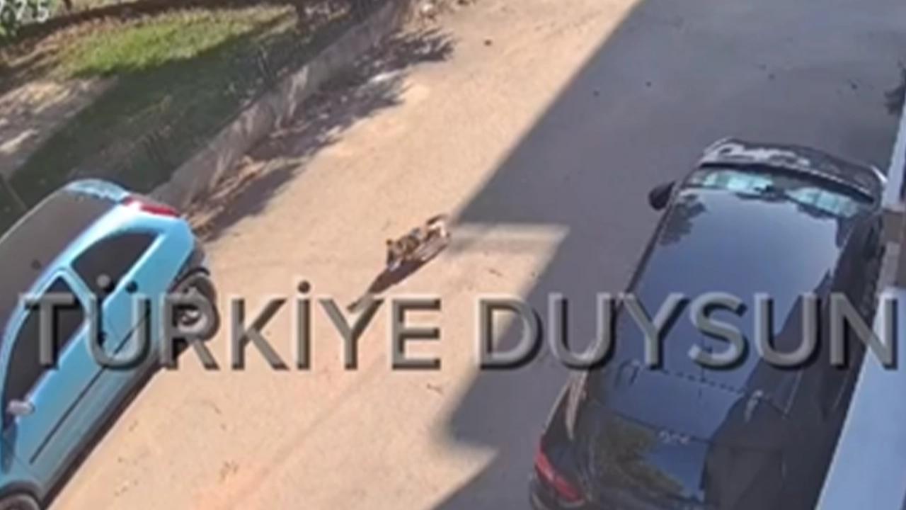 Görüntülerde feryat eden köpeğin sokakta koştuğu ve arkasından kedinin kendisini kovaladığı anlar yer alıyor.