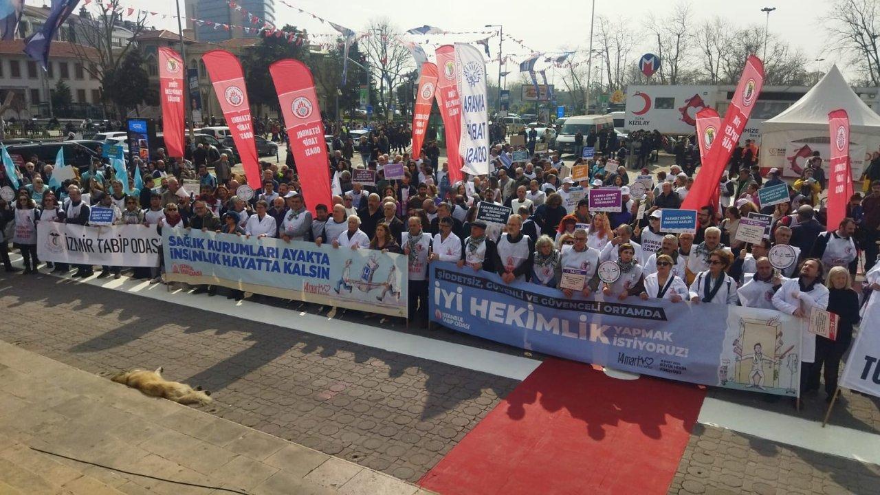 İstanbul'da bir grup sağlık çalışanı, 14 Mart Tıp Haftası nedeniyle taleplerini duyurmak için yürüyüş düzenledi. Yürüyüş sonrası yapılan basın açıklamasında sağlıkçılar, şiddetsiz, güvenceli, demokratik çalışma koşulları sağlayan ve halk için ulaşılabilir bir sağlık ortamı istediklerini dile getirdi.