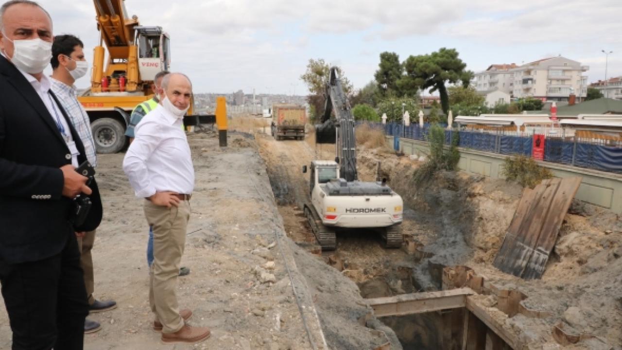 İSKİ’nin Büyükçekmece’de sürdürdüğü en önemli çalışmalarından biri depreme dayanıklı kollektörlerin döşenmesi. Kordonboyu’nda 3 ayrı noktadan başlatılan depreme dayanıklı kollektör hattı yenileme çalışması tüm hızıyla devam ediyor. Ayrıca Mimaroba – Sinanoba atık su ve yağmur suyu hattı, Türkoba mahallesi atık su ve yağmur suyu hattı çalışması, Güzeltepe Caddesi’nden itibaren başlatılan içme suyu hattı çalışması ve Ahlat deresi ıslah çalışması İSKİ’nin Büyükçekmece’de başlattığı çalışmalar. Kemerdere - Serinpınar atık su ve yağmur suyu hattı çalışmasına da önümüzdeki günlerde başlanacak.
