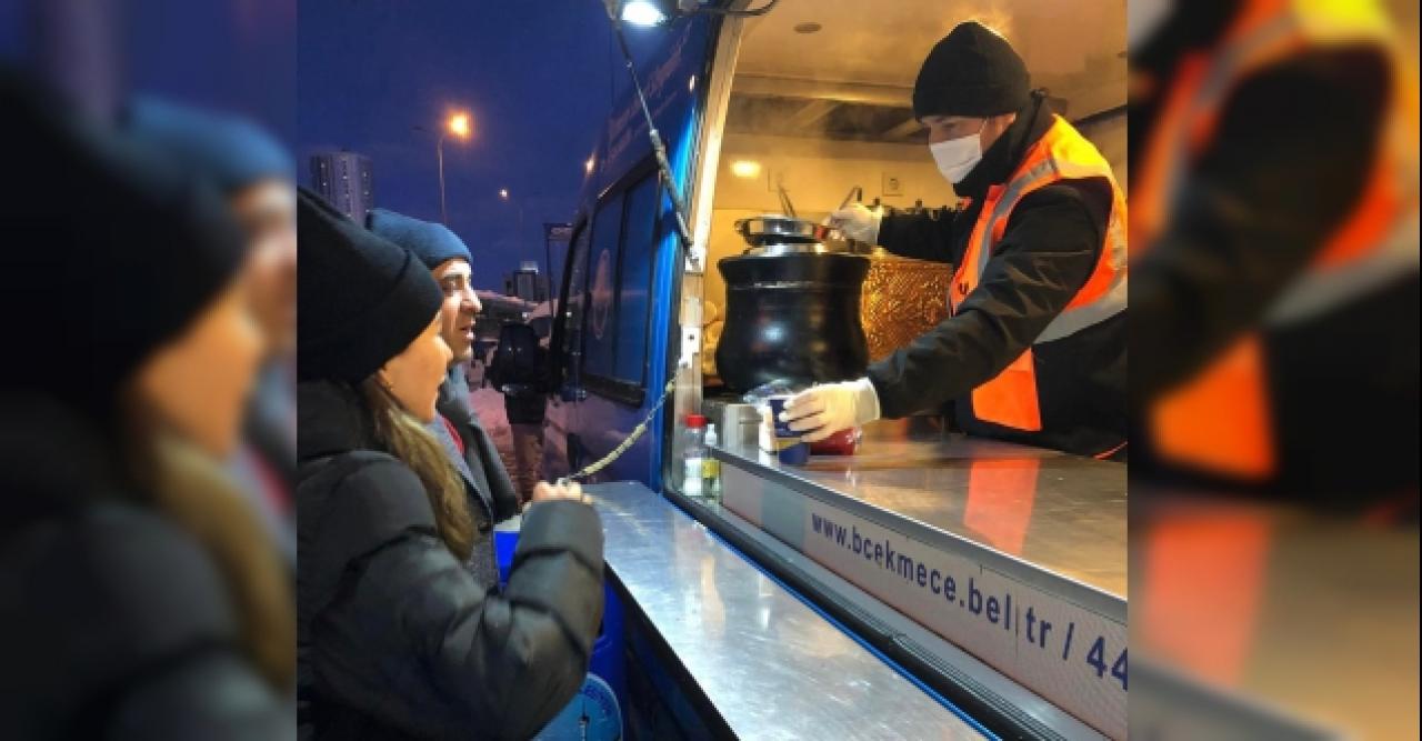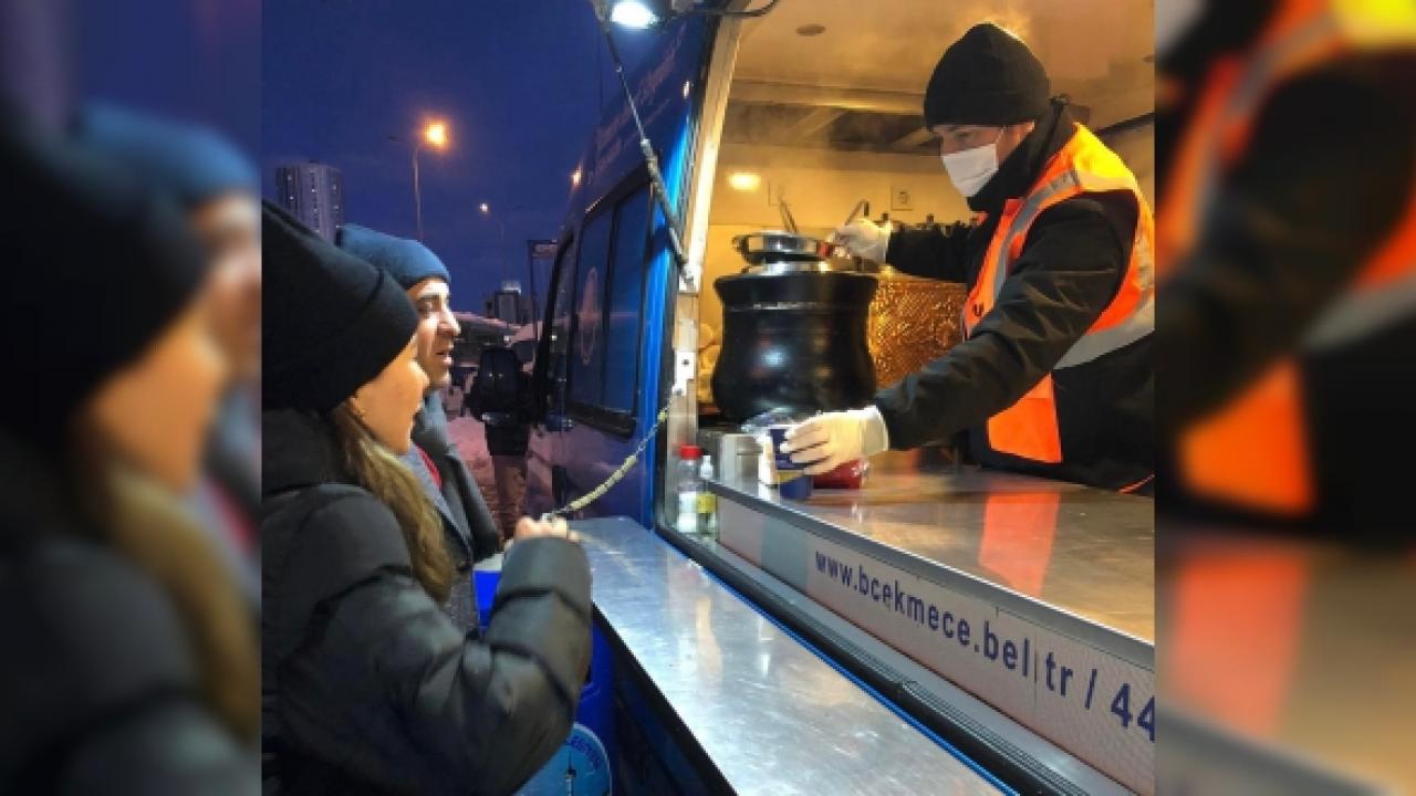 Yoğun kar yağışının ardından yolda mahsur kalan vatandaşlara Büyükçekmece Belediyesi’nin ücretsiz ikram araçlarıyla sıcak yemek, su ve çay ikram edildi. Yolda kalan vatandaşlar ücretsiz ringler ile evlerine ulaştırıldı. Vatandaşlar evlerine ulaştırılırken Sağlık İşleri Müdürlüğü’ne bağlı Veteriner Şefliği ekipleri de sokakta yaşayan canlılara mama dağıtarak zorlu hava şartlarında can dostlarımızı unutmadı.