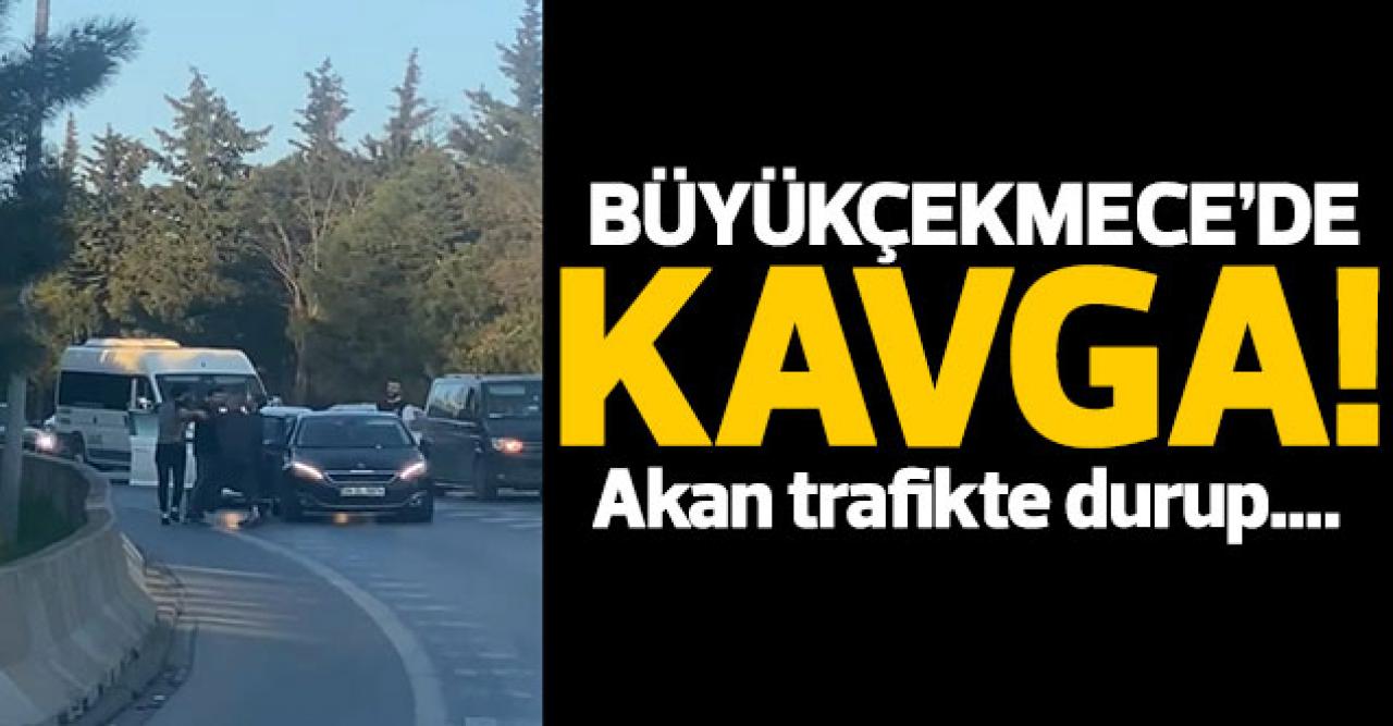 İstanbul Büyükçekmece'de iki otomobilde bulunan gruplar akan trafikte birbirlerine girdi. Kavga sebebiyle trafik bir süre durdu.