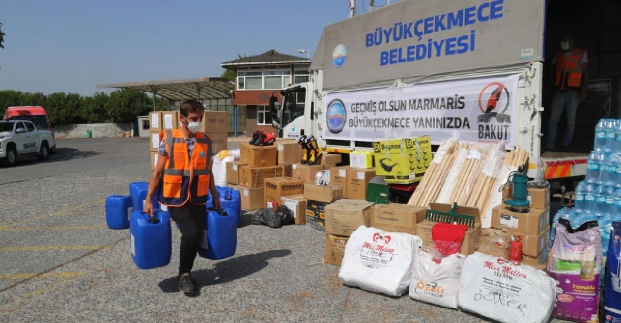 Büyükçekmece Belediyesi, yangın bölgelerinde görev yapan ekipler, gönüllüler, yangından etkilenen vatandaş ve hayvanlar için ihtiyaç doğrultusunda hazırlanan malzemeler yola çıktı.
