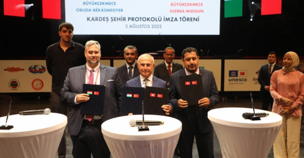 Özellikle kültür ve sanat alanlarında kurduğu kardeş şehir ilişkileriyle adından söz ettiren Büyükçekmece Belediyesi, Tunus ve Macaristan’dan belediye ile kardeş şehir protokolü imzaladı. 23. Uluslararası İstanbul Büyükçekmece Kültür ve Sanat Festivali kapsamında gerçekleşen protokol töreni Kemal Sunal Amfi Tiyatro’da yaklaşık 5 bin Büyükçekmecelinin katılımıyla imzalandı. Büyükçekmece Belediye Başkanı Dr. Hasan Akgün, Büyükçekmece’nin daha önce 11 kardeş şehri olduğunu açıklayarak bu ilişkilerin özellikle kültür ve sanat alanında yürütüldüğünü ve her geçen gün ilişkilerin daha da pekiştirildiğini söyledi.