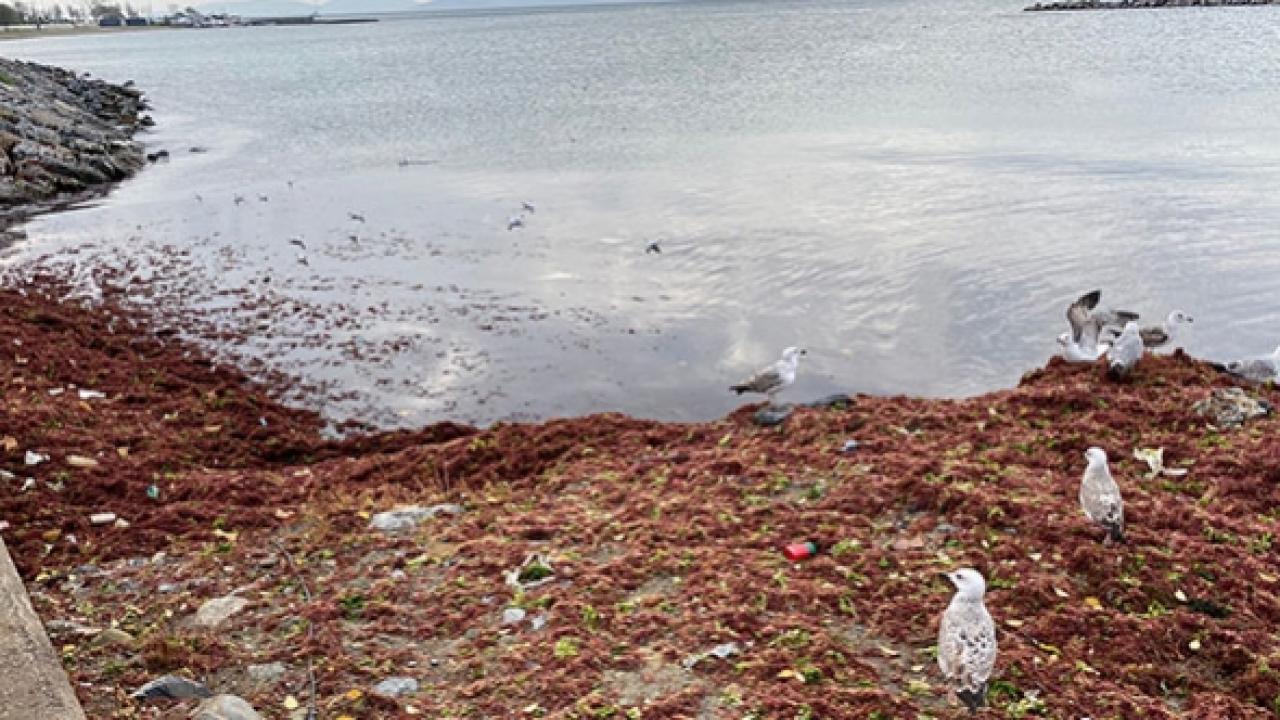 İstanbul Anadolu Yakası'nda rüzgarın ardından her yıl olduğu gibi bu Aralık ayında da kırmızı yosunlar sahile vurdu. Kadıköy Caddebostan Sahili'nde bulunan yelken kulübü de yosunlardan etkilendi. Kulüp görevlileri küreklerle biriken yosunları temizledi. Sahilde bulunan kırmızı yosunlar havadan da fotoğraflandı.