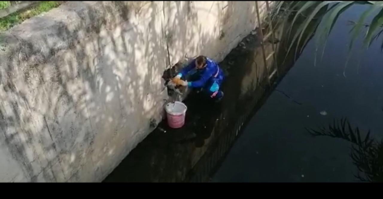 Dereye düştükten sonra duvar arasına sıkışan kediyi o sırada çevrede bulunan Tuzla Belediyesi Temizlik Personeli Mehmet Teke kurtardı. Temizlik personeli Mehmet Teke, Tuzla’nın Evliya Çelebi Mahallesi’nde bulunan ve Şinası Dural Caddesi’nden geçen derenin üstünde bir kalabalık fark etti. Kalabalığa doğru yaklaştığında; dereden gelen kedi sesini fark etti. Derenin istinat duvarında oluşan yarık içerisinde sıkışmış kediyi kurtarmak için dereye inen temizlik personeli, kediyi sıkıştığı yerden uzun bir çalışma sonrası ensesinden tutarak, dereye sarkıtılmış kovanın içine bıraktı. Vatandaşlar tarafından yukarıya çekilen kedi koşarak gözlerden uzaklaştı. Daha sonra kurtardığı kediyle bir araya gelen Temizlik Personeli Mehmet Teke, “Şinasi Dural Caddesi’nden geçerken bir kalabalık gördüm. Ne olduğunu görmek için dereye inip baktım. Kedinin dereye düştüğünü gördüm. Ben de dereye inerek bir vatandaş olarak müdahale ettim” dedi.
