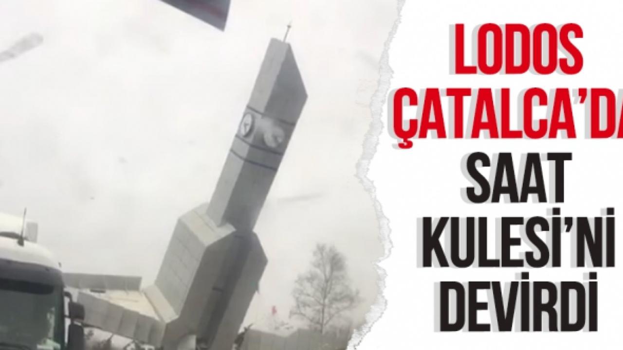 Çatalca'da saat kulesinin devrilmesi kameraya yansıdı. Çatalca Serbest Bölge'de kapı girişindeki saat kulesi lodosun etkisiyle devrildi. Devrilen saat kulesi parçalandı. O anlar kameraya yansıdı