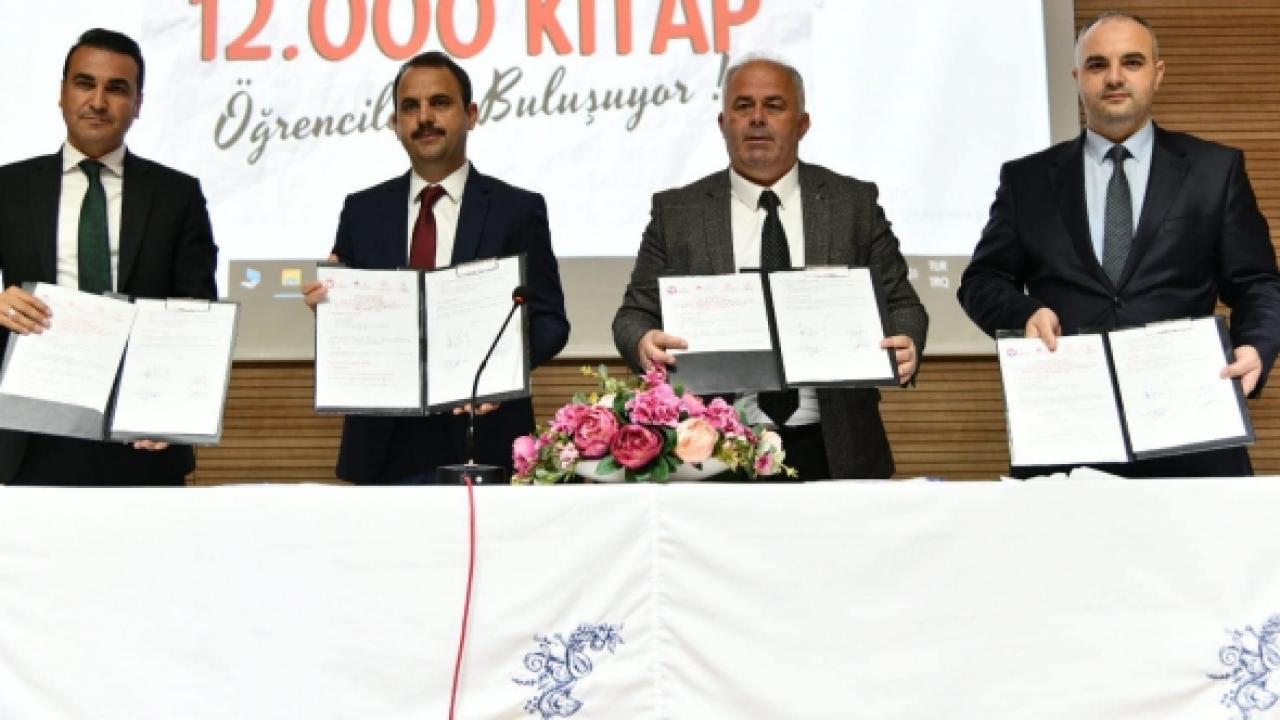 İmzalanan protokol ile Çatalca’da okul kütüphanelerine 12 bin yeni kitap kazandırılıp, okul kütüphanelerindeki toplam kitap sayısı 70 bin seviyelerine ulaştırıldı. Kaymakam Erdoğan Turan Ermiş, Belediye Başkanı Mesut Üner, Milli Eğitim Müdürü Tayfun Özyolcu ve Sosyal Yardımlaşma ve Dayanışma Vakfı Müdürü Tarık Çalışkan’ın katıldığı imza törenine, ilçedeki okul müdürleri, öğretmenler, öğrenciler ve okul aile birliği başkanları katılım sağladı. Başkan Üner, “Yarınlarımızın teminatı çocuklarımızın ve gençlerimizin okuma kültürünün yaygınlaştırılması amacıyla, Kaymakamlığımız, Belediyemiz, Milli Eğitim Müdürlüğümüz ve Sosyal Yardımlaşma ve Dayanışma Vakfımız ile yaptığımız iş birliği protokolümüzle, okul kütüphanelerimize 12 bin kitap daha kazandırdık. Her alanda olduğu gibi söz konusu eğitim olunca da öğrencilerimizin yanında olmaya devam edeceğiz. Tüm Çatalca’mıza hayırlı olsun.” dedi.